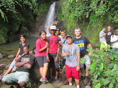 Rob was able to go to Seven Sisters Falls with the other missionaries in Grenada today. He said it was "very cool." Not the air temp, of course, but the scenery. AND, he sent photos! Here are his email notes from today: "85 and rainy. How'd you know? Same old weather here. Sister Maico, who I came out with, just went home because of a knee injury sustained while playing beach volleyball. Kinda sucks, especially since it has enforced a rule that we are no longer allowed on beaches. :/ O well. But in her email she said even in the middle of summer in LA it's still cold there. haha. Gonna be quite the change coming home. Thanks for the words of encouragement. I'm sure that there are some people who, just by having a quick chat on the bus or even some of our investigators, will have their hearts softened to future missionaries. Sometimes that's just the best we can do, you know? Scripture study class and church are about the same as usual. Three showed to scripture study and ten to church. Some old faces we haven't seen at church in awhile, some familiar faces missing. Lol. I swear they have like a schedule set on who comes to church so others won't come. But regardless, they are out there and just need to feel loved and cared for, I think. I ended up teaching the group discussion at church. It was about retaining a remission of our sins. Maybe you had the same topic? I don't know, it was given to our group leader by the St. Georges branch president, so I'm assuming it's like a worldwide thing? Lol. Not too sure, but anyway, it went really well. I decided to hit more strongly on the sacrament and how important it is, and the opportunity it gives us to refill our spiritual glass each week. I hope I did't sound like I was guilt tripping them into coming to church too much, that's kind of what I was trying to avoid. I tried to make it seem more inspirational and encouraging, but sometimes you don't realize how well it comes off. Half the people were asleep anyways. haha. Whenever someone falls asleep, I immediately call on them to read a scripture. Lol. It seems to work, so why not, right? haha. Things here still suck at my apartment. Even the senior couple that came to visit said that it was not livable housing for missionaries. But oh well, every morning I wake up to take a cold shower I just think to myself, 'only 8 more months and you'll be back to hot showers, cool sleeping, and a bed that's not broken.' It's keeping me sane for now. I am studying a lot about the Atonement and getting a better feel for Christ and His suffering. It's really impossible to fully comprehend, but I feel like for once in my life I'm starting to scratch the surface of it all. Anyways, everything here is gonna be fine! Love you guys so much. Tell Baxter I miss him!!!! Thank you for everything and the help and support. Bless up!"